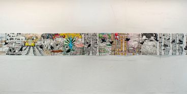 Backgrounds are drawn in Adobe Photoshop, animated with symbols in Adobe Animate.